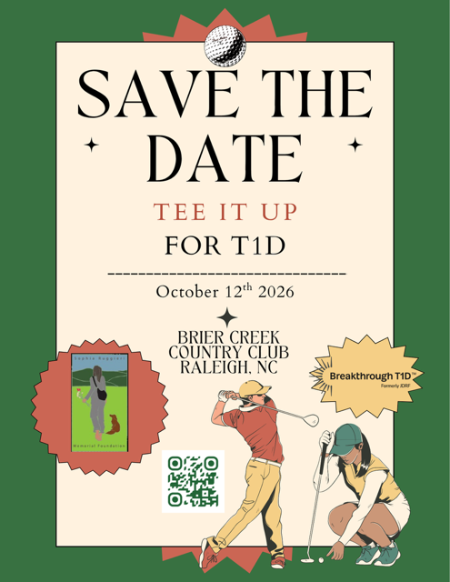 Grab your foursome and Tee It Up for T1D! Come join us at beautiful Brier Creek Country Club, an Arnold Palmer-designed championship golf course, for our inaugural charity golf tournament. This year’s event features a complimentary breakfast, a silent auction and raffle, as well as other fun on-course games. Net proceeds will benefit the Sophia Ruggieri Memorial Foundation and Breakthrough T1D, 501(c)(3) organizations dedicated to transforming the lives of those affected by Type 1 Diabetes.